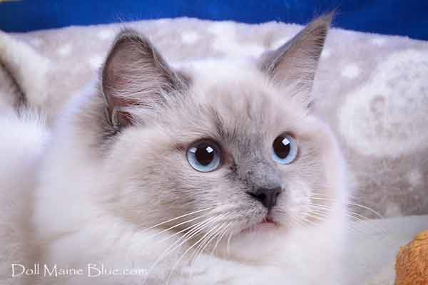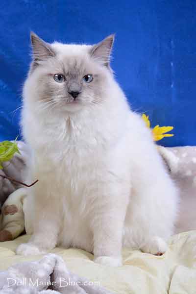 Van:coloration uniquement du haut du crâne, des oreilles et de la queue. Tout le reste du corps est blanc. La CFA autorise ce patron supplémentaire. En France, le LOOF ne l'accepte que comme nouvelle couleur, c'est-à-dire que les ragdolls van peuvent participer aux expositions mais pas remporter de prix.